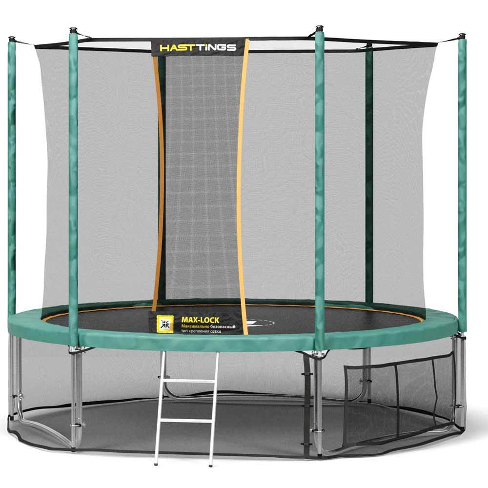 Безопасный батут для дачи Hasttings Classic Green (зеленый) или Pink (розовый) диаметром 3,05 м оборудован двумя защитными сетками. Во время прыжков иногда бывает очень трудно удержать равновесие, и тогда на помощь приходит защитная сеть, не дающая человеку упасть с батута. Сетки изготовлены из прочного, эластичного и надежного полиэстера с мелким плетением. Нижняя сетка с кармашками не позволяет непоседливым озорникам и домашним питомцам даже случайно оказаться под батутом, особенно, когда на нем кто-то прыгает. А в кармашки можно положить бутылочку с водой, телефон, часы и все, что мешает в полетах или может выпасть во время прыжков.