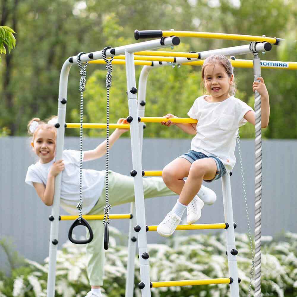 | Комплектация | Гимнастические лестницы - 2 шт, Турник неподвижный, Рукоход, Канат, Кольца, Качели |