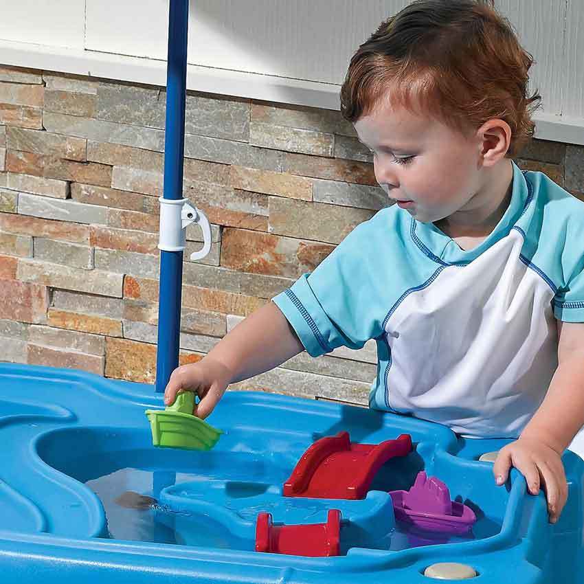 Столик для игры с песком и водой Step2 Синий знает, чем развлечь малышей на свежем воздухе. Удобный прочный пластиковый стол разделен на две игровые зоны. Одна ванночка наполняется песком и становится уютной песочницей. Совок и формочка в комплекте. Вторая ванночка заполняется водой и по причудливому каналу пускаются в круиз веселые кораблики. А еще по суше проложена дорожка с мостиками через канал, по которой могут кататься машинки или прогуливаться куклы.