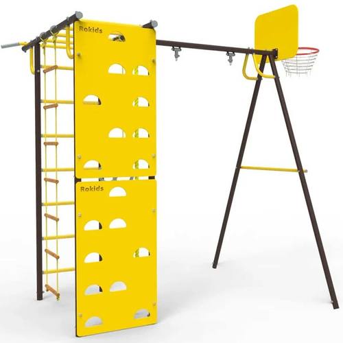 Уличный детский комплекс со скалодромом ROKIDS УДСК-6.1 Тарзан Мини оборудован большим количеством спортивных снарядов, чтобы привлечь внимание ребенка, стимулировать его фантазию и желание осваивать эти самые снаряды. Самые заметные элементы - это, конечно, скалодром и качели. Именно к ним ребенок и бросится в первую очередь. Качели, кстати, в базовую комплектацию не входят и приобретаются дополнительно. Но сделано это специально, чтобы Вы могли выбрать именно те, которые ребенку подойдут больше всего - цепные со спинкой, гнездо или в виде классической доски.