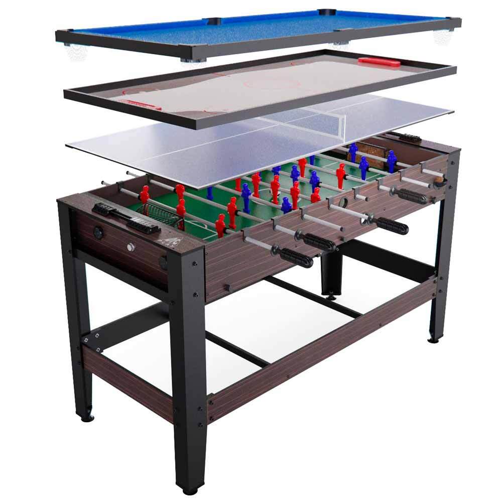 | Размер игрового поля | Футбол 102 х 58 см, Аэрохоккей 104 х 58 см, Бильярд: 111.5 х 52 см, Теннис 120 x 61 см |