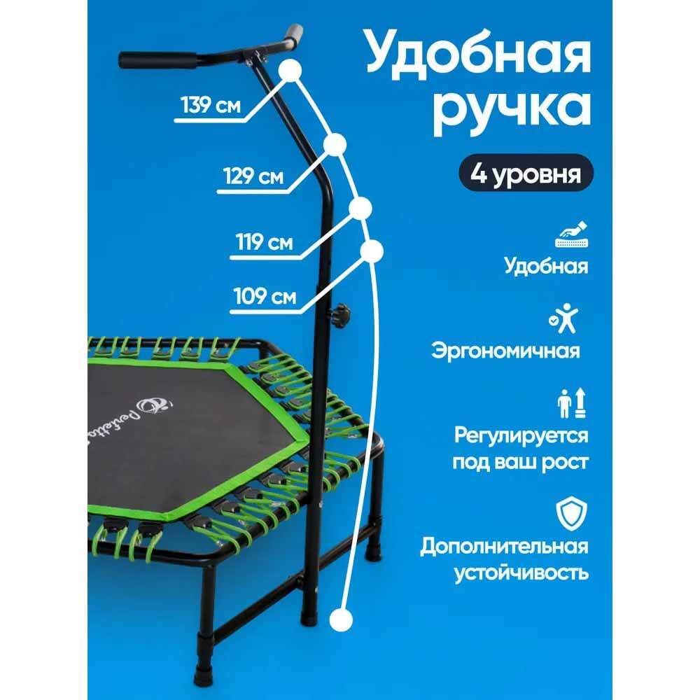 - Регулируемая высота ручки - 4 положения от 90 до 125 см - позволяет настроить батут под Ваш рост.