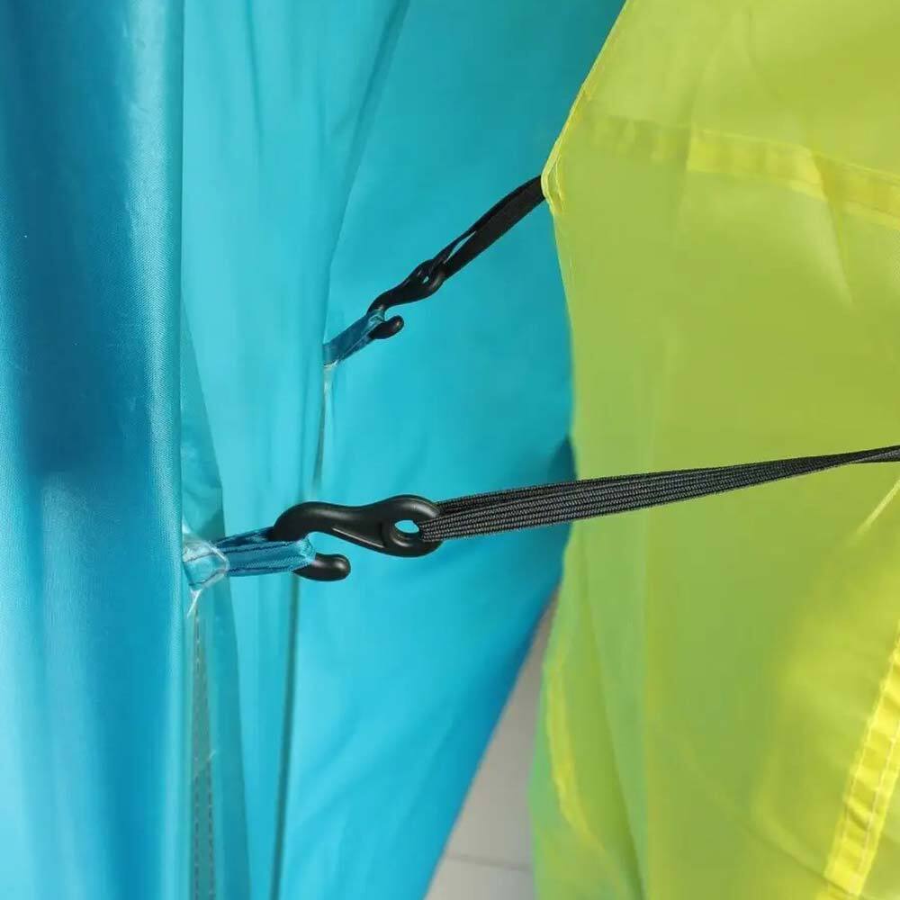 Палатка укомплектована светоотражающими растяжками, анкерами для крепления к земле и удобной сумкой для хранения и переноски. Конструкция легко собирается, но лучше это делать с помощником из-за её большого размера.