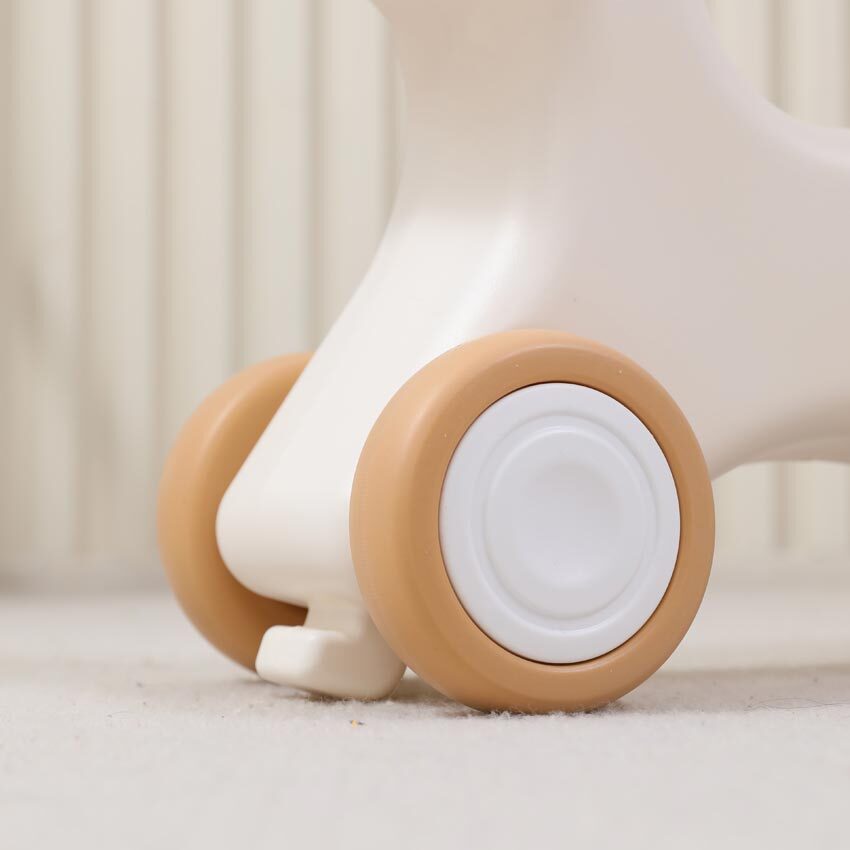 На балансировочной платформе Лошадка Camel закрепляется пластиковым болтом и защелкой. Также на ней предусмотрены углубления для фиксации колес и ограничители угла наклона, чтобы качалка не переворачивалась, даже если на ней раскачаться очень сильно. Лошадка же оборудована неподвижными рукоятками, чтобы малыш мог за них держаться, а ее хвостик выполняет роль небольшой спинки-ограничителя на сиденье.