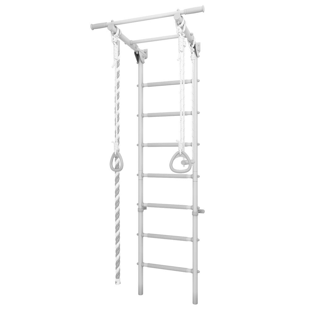 Комплектация | Шведская лестница, Турник неподвижный, Канат, Кольца, Трапеция |