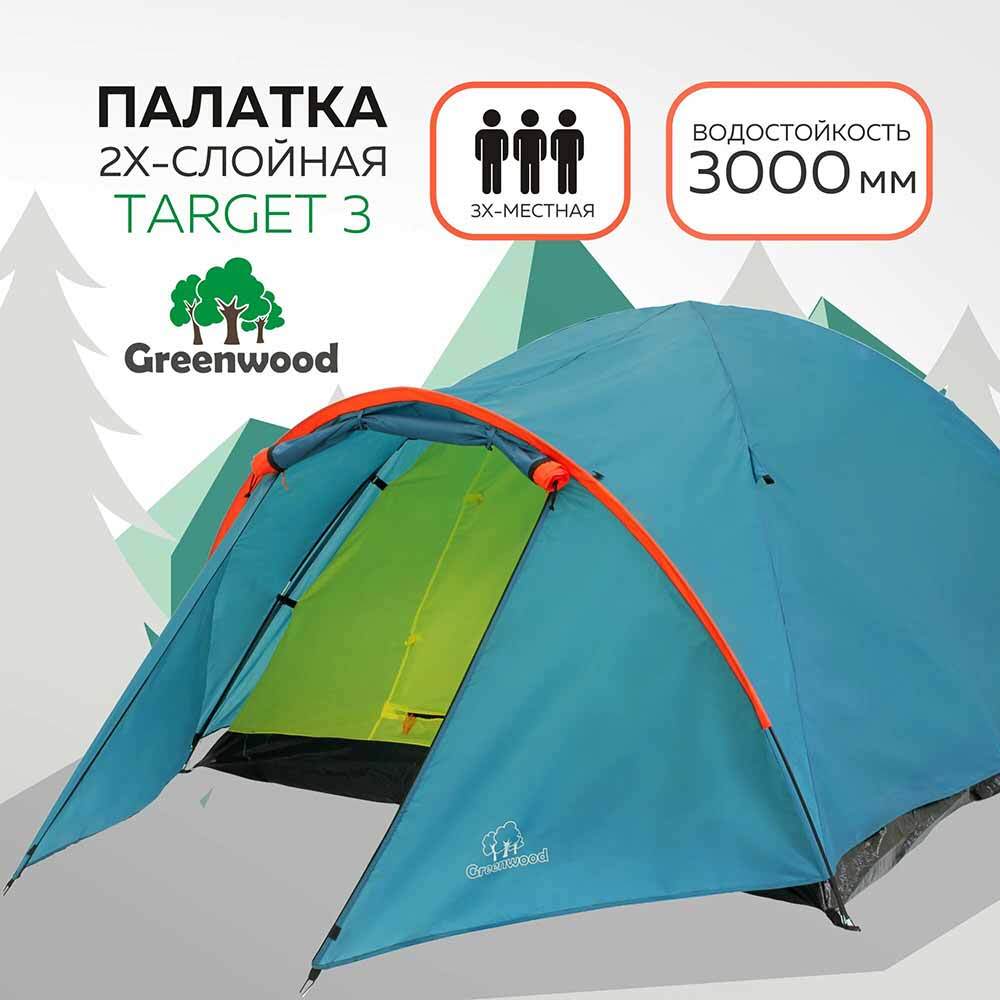 Туристическая палатка GREENWOOD TARGET 3 синяя - 3-местная 1-комнатная 2-слойная