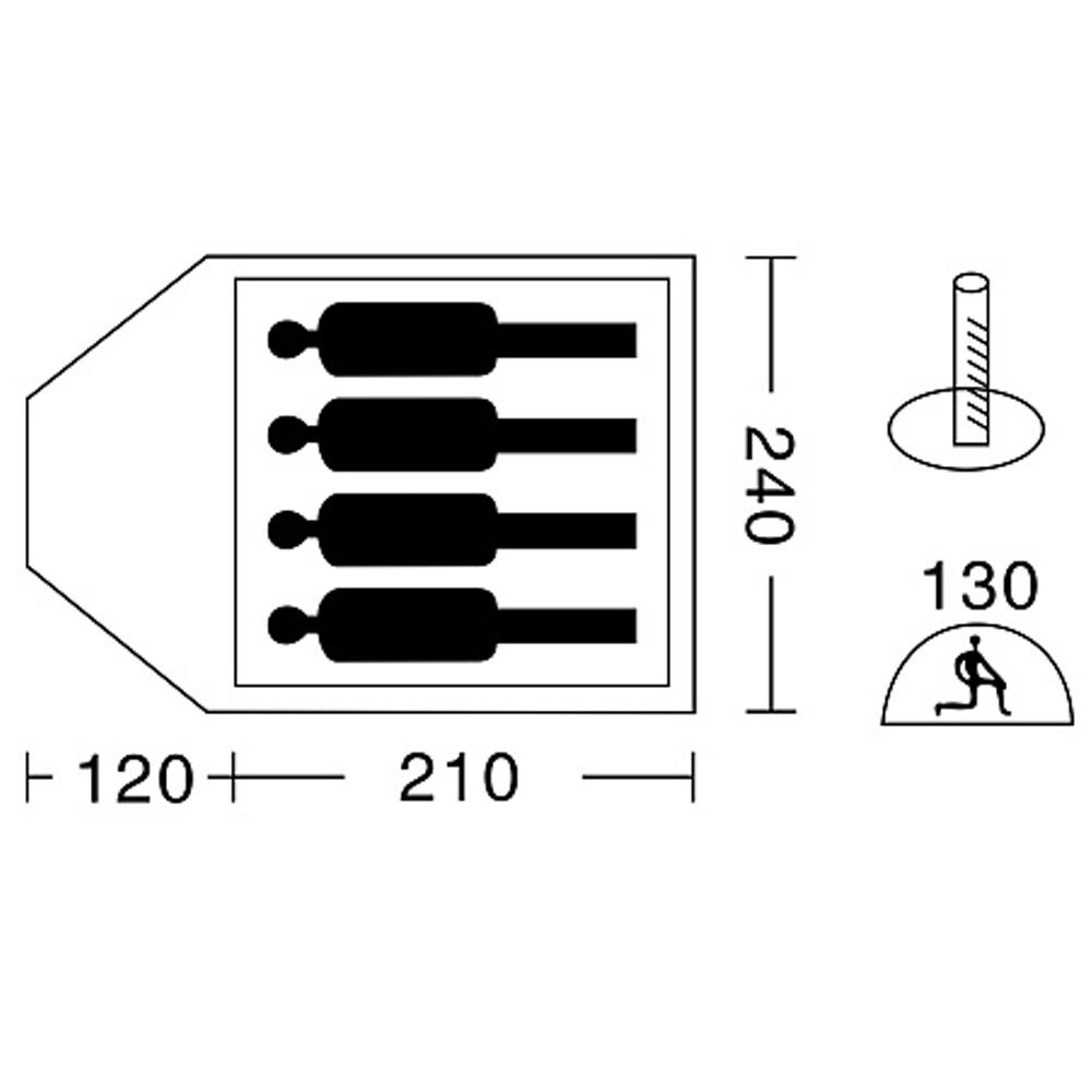 | Внутренняя палатка | 240 х 210 х 130 см, дышащий полиэстер |