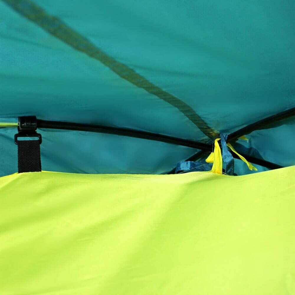 В палатке предусмотрен один вход, защищенный антимоскитной сеткой, спальный отсек и небольшой, но уютный тамбур для хранения вещей. Модель оборудована вентиляционным отверстием, которое позволяет поддерживать в палатке нормальный микроклимат, а также крючком для подвешивания туристического фонаря и кармашком для мелочей.