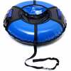 Тюбинг KMSsport Ватрушка 90 см готов катать на себе ребятишек и их родителей всю зиму, если она, конечно, снежная. Допустимая нагрузка на тюбинг до 120 кг. Выпускается в двух расцветках - черно-синий и голубо-красный. Материал - армированный ПВХ плотностью 900 г/м2, устойчивый к морозам. Чехол прочный, с гладкой и глянцевой поверхностью, поэтому тюбинг отлично скользит вниз по снежной горке.